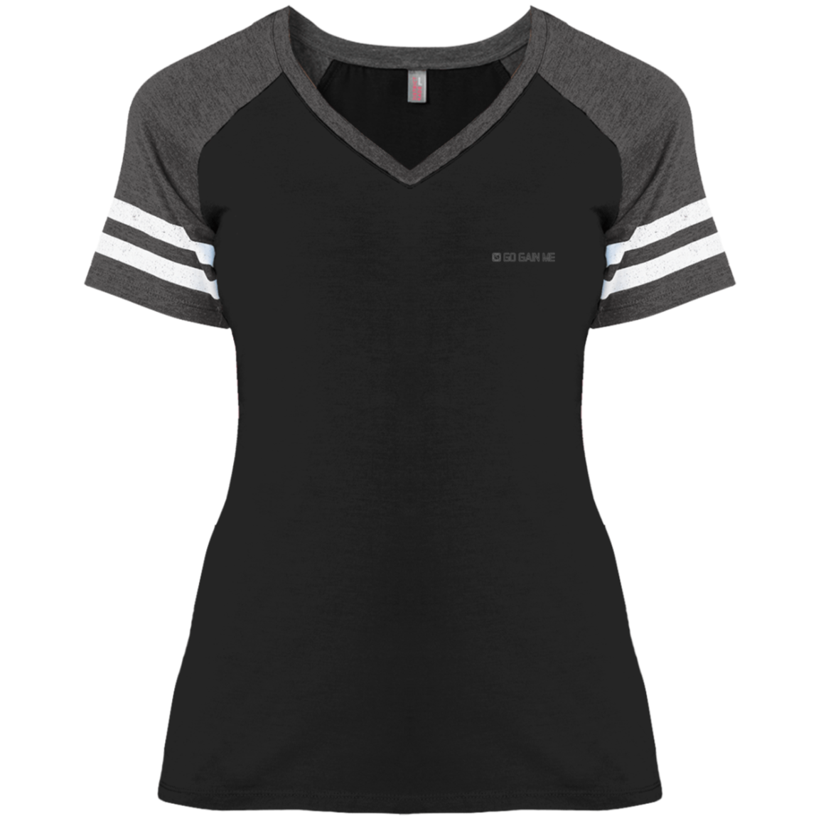 This Ladies` V-Neck T-Shirt is cool for sports. Are you cool? Take the challenge and get this shirt.